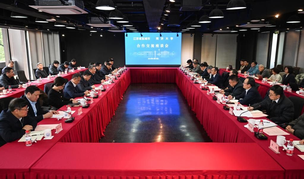 1月28日,同济大学与江苏省盐城市合作交流座谈会在四平路校区召开,共同探讨校地合作前景。盐城市委书记周斌,市委常委、常务副市长费坚,同济大学校长、中国科学院院士杨金龙,同济大学副校长、中国工程院院士童小华等出席会议,同济大学党委副书记刘润主持。