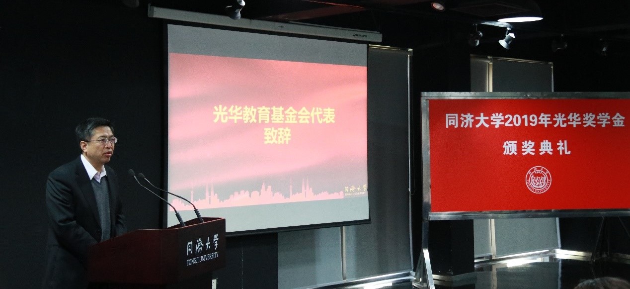 12月11日上午,同济大学2019年光华奖学金颁奖典礼在中法中心C301多功能厅举行。光华教育基金会执行长陈振川出席并致辞,典礼由党委学研工部副部长徐纪平主持。党委统战部部长岳继光、对外联络与发展办公室副主任梁春...
