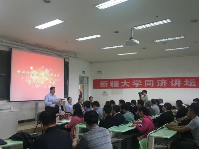 6月7日至9日,我校党委副书记姜富明一行11人赴新疆大学举办第五届“同济讲坛”。8日上午,讲坛开幕式在新疆大学南校区举行,新疆大学党委常委、副校长吴广明,建筑工程学院领导,两校有关职能部门负责人及我校专家学者出席。