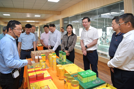 在当地龙头企业——云龙县丰农农业开发有限责任公司生产车间,调研团察看了新建的粗粮加工生产线,了解疫情期间农特产品销售情况。2016年起,学校以销售扶贫为牵引,在原料加工生产、线上线下销售、后期管理服务各环节开展精准帮扶,推动丰农公司整合带动当地70多家企业、合作社和贫困群众,实现“从田间到餐桌”的产业链上下游贯通,促进当地特色产业发展壮大。2020年,学校继续加大帮扶力度,投入90万元支持种植、养殖专业合作社建设,并将于8月组织当地管理干部和农村产业带头人赴同济大学乡村振兴学院(黄岩)开展专项培训。