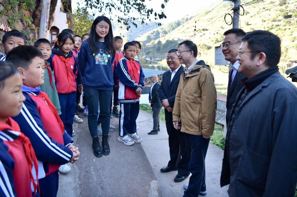 在云龙县民族初级中学,调研团与在校师生亲切交流。该校20%的生源来自脱贫异地搬迁集中安置福堂社区,承担着脱贫家庭学生基础教育的重要使命。支教团来到云龙县民族初级中学之后,积极开展教研活动,加强建设班风学风,更联动外部资源向学校捐助奖、助学金6万元,为云龙县学生和东部地区连接起沟通帮扶的桥梁。