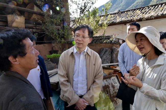 在云龙县的贫困村诺邓镇永安村,方守恩实地调研脱贫攻坚工作,详细查看贫困户档案,走访慰问了部分贫困户,并听取了我校派驻永安村的第一书记刘一呈的工作汇报。