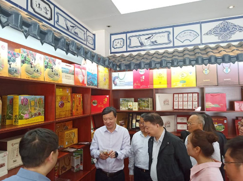 在云之味高原农特产品展示中心,陈杰询问了云龙县农特产品销售情况,了解学校为贫困户增收致富创立的“党建+龙头企业+合作社+建档立卡户”产业扶持新路径,并对产品分类包装和扩大销售渠道提出了意见建议。