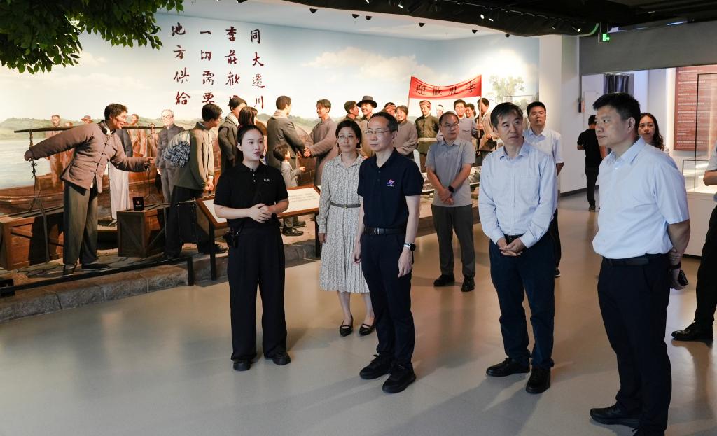 抵达李庄文化抗战博物馆,馆内陈列的“同大迁川,李庄欢迎,一切需要,地方供给”十六字电文,将时光拉回1940年。同济在李庄扎根六年间,李庄士绅官民竭力为同济解难,而同济师生们致力潜心问学、科教济世,投身文化抗战、救亡图存,追逐理想、不负光阴。杨金龙驻足细看一幅幅珍贵的老照片,察看保留至今的滑轮吊钩等实验装置。他动情地表示:“李庄以‘学术方舟’之姿,庇护了中华文脉,这份情谊同济永志不忘。”