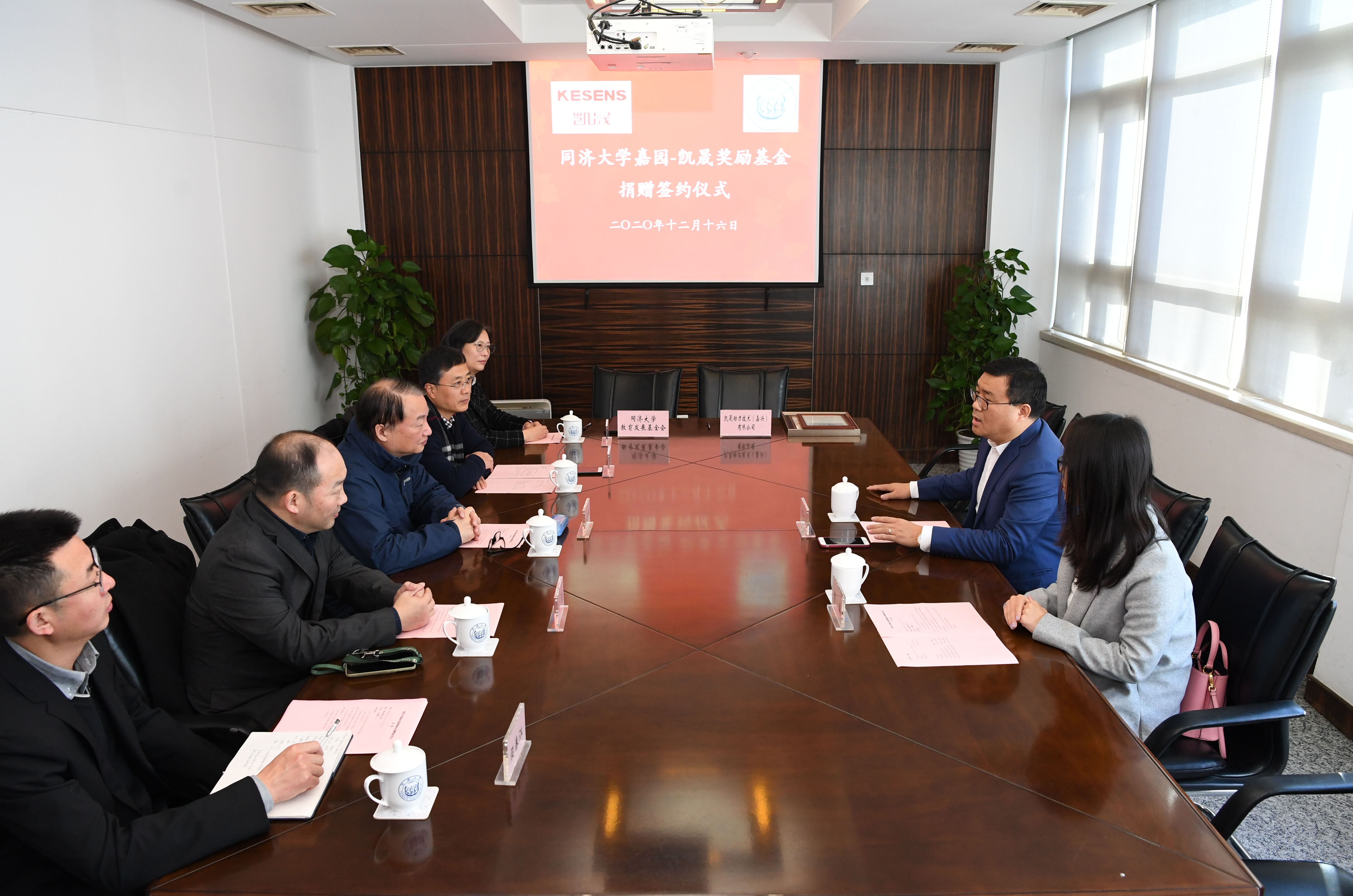 12月16日上午,“同济大学嘉园—凯晟奖励基金”捐赠签约仪式在四平路校区举行。凯晟动力技术(嘉兴)有限公司董事长陈志贤、董事会秘书李真,我校党委副书记徐建平,以及教育发展基金会、嘉定校区管理委员会办公室负责人等出席仪式。