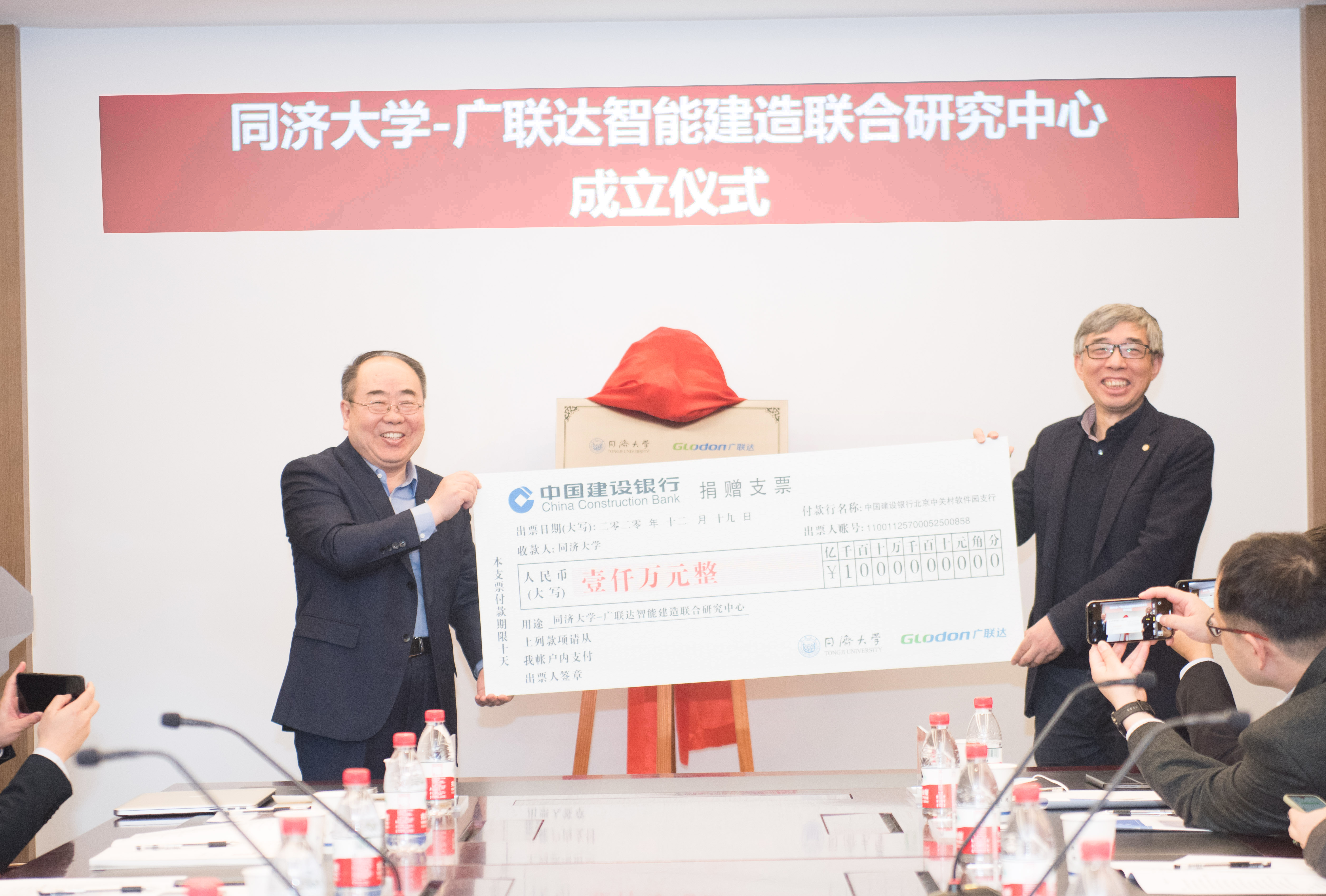 12月19日,同济大学与广联达科技股份有限公司签署合作协议,共建“同济大学-广联达智能建造联合研究中心”,并同步设立教育发展基金。副校长顾祥林、广联达董事长刁志中,以及我校土木工程学院、工程与产业研究院、教育发展基金会负责人等出席仪式。