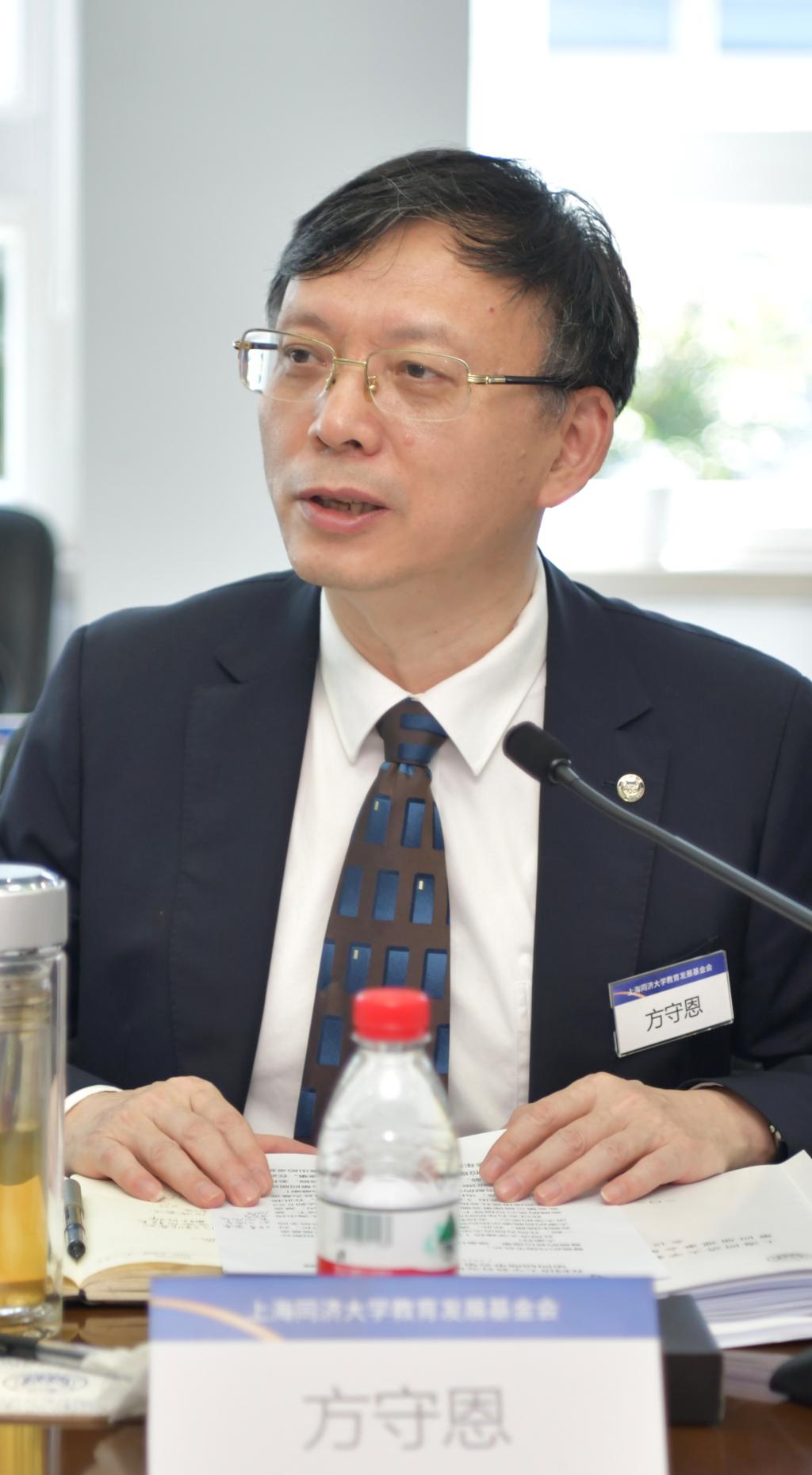 方守恩在讲话中表示,过去五年来,在上海市教育委员会、上海市民政局的关心与指导下,在各位理事、监事的鼎力支持下,基金会各项工作圆满完成。希望在上一届理事会优异成绩的基础上,能够继续建立和丰富多元化筹资的手段和渠道,加强筹资力度,扩大筹资范围,为学校的学科发展、科研攻关、人才培养等方面提供支持。他要求基金会要更高层次定位、更高标准建设、更广层面聚力,推进进一步发展,同时他表示,每一位理事都是基金会重大事项的决策者和对外渠道的代言人,诚恳希望各位理事一如既往地建言献策,多提宝贵意见和建议,多多牵线搭桥,引荐社会资源,为基金会的发展贡献力量,为推动同济大学事业发展添砖加瓦。